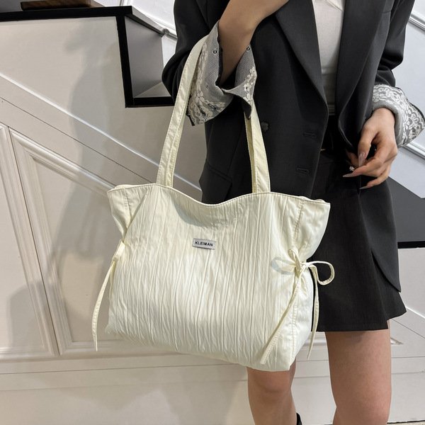 ছাড়Cross-Border Nylon Cloth Bag Women's Bag 2025 New Style Simple Fashion Large Capacity Pleated Shoulder Bag Student Tote Bag