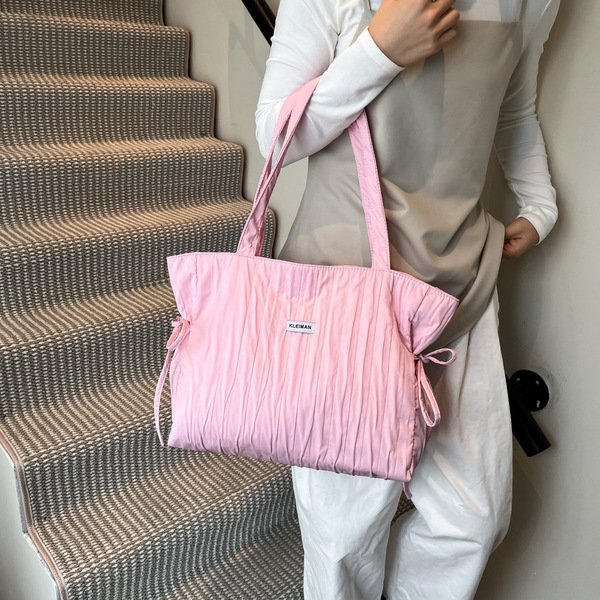 ছাড়Cross-Border Nylon Cloth Bag Women's Bag 2025 New Style Simple Fashion Large Capacity Pleated Shoulder Bag Student Tote Bag